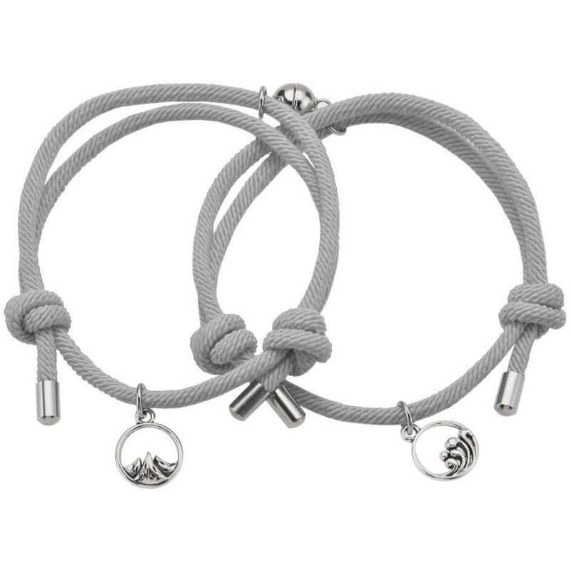 Un bel gioiello può valorizzare qualsiasi outfit e questo braccialetto è adatto sia per l'uso quotidiano che per le feste. Il braccialetto rappresenta delle corde che vengono tenute insieme con l'aiuto di due nodi. Spostando i nodi, puoi regolare la dimensione del braccialetto per adattarlo a te. Ciondoli in argento raffiguranti onde sono appesi al bracciale. - Un bel braccialetto solleva il tuo outfit - Due bracciali attaccati insieme con magneti - Ciondoli color argento che rappresentano le onde Specifiche: Colore: grigio Materiale: poliestere Taglia: taglia unica La confezione contiene: 2x Bracciale