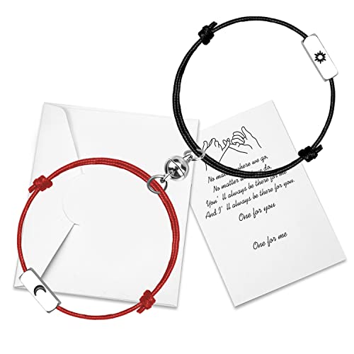 Coppia Braccialetti Magnetici con Campana di Attrazione del Cuore Braccialetti Reciproci Coppia Regali per Fidanzato Fidanzata Sua Lei Donne Uomini Ama Lui La Sua Amicizia (Sun Moon Black Red)