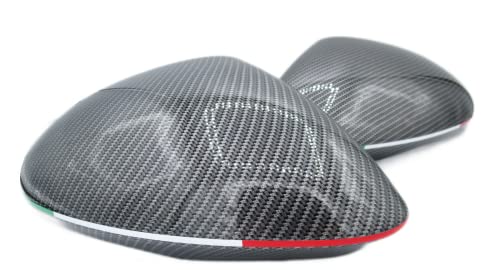 Coppia Calotte Specchio Compatibile con Alfa Romeo Stelvio Carbon Look Effetto Fibra di Carbonio coprispecchietti retrovisori tuning dx sx (Effetto Carbonio con Bandiera Tricolore)