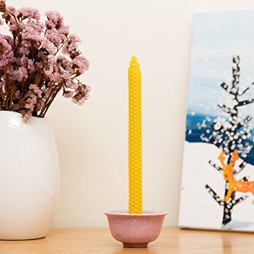 Ogni candela conica in cera d'api ha un tempo di combustione di circa 4 1/2 ore e sono senza fumo e senza secchi quando viene tenuto lontano da correnti d'aria.