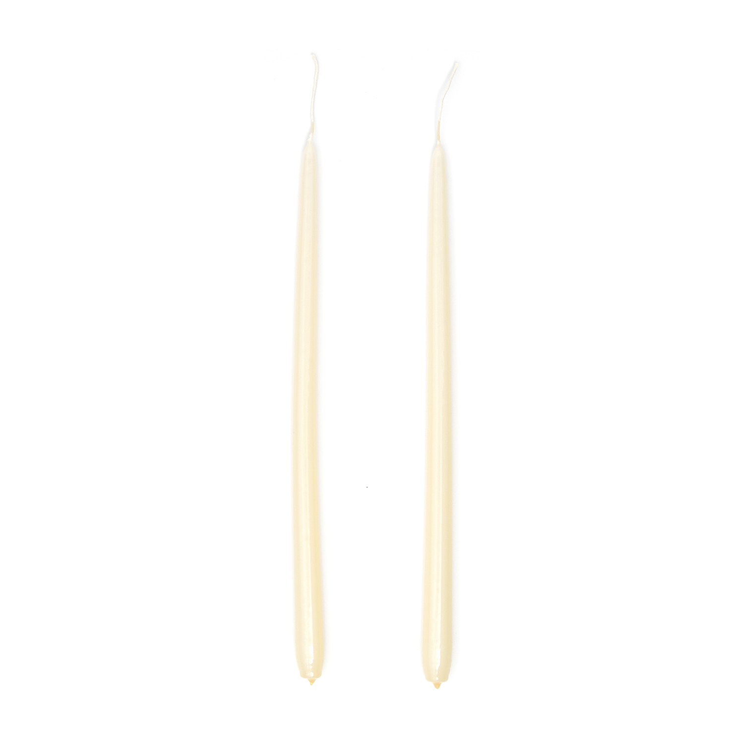 Coppia di candele dallo stelo affusolato, ideali per donare calore e atmosfera a qualunque stanza. Perfetto complemento d'arredo per ogni tipologia di ambiente, sono caratterizzate da una superficie lucida che si adatta a uno stile sia rustico che moderno. La luce della candela dona un calore unico trasformando le ombre in disegno.