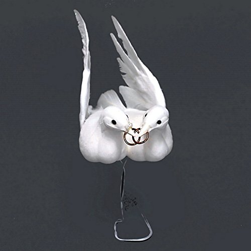 Coppia di colombi con anelli, per matrimonio, bianco, 18cm groß