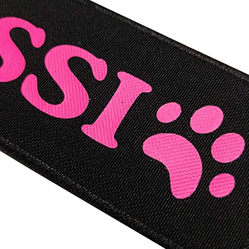 Coppia Etichette Personalizzabili con Il Nome del Cane, Complete di Chiusura a Strappo, per imbracatura Julius K9 (16x5 cm (Confezione da 2), Rosa Fluo)