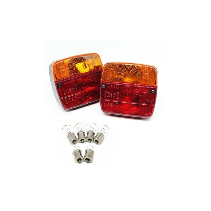 COPPIA FANALE POSTERIORE DESTRO PIU' SINISTRO 3 LUCI COMPLETI DI LAMPADINE Fanale a 3 luci destro senza luce targa più fanale a 3 luci sinistro con luce targa + 4 Lampadine 12V - 21W e 2 Lampadine 12V - 5W a bulbo. Misure in foto.