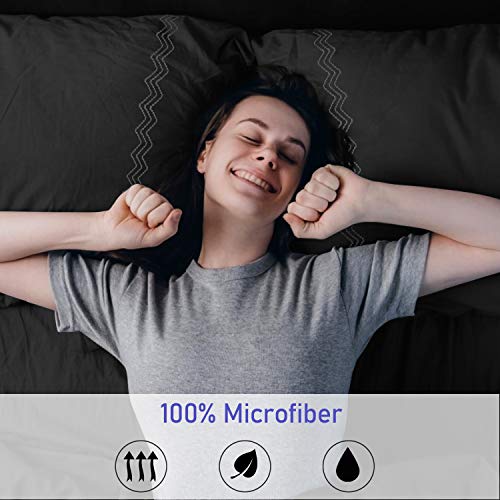 O'woda Coppia di Federe Cuscino Letto in Microfibra 50 x 75 cm, Federe de Chiusura a Busta, Eleganza e Moderna, Tinta Unita - Nero