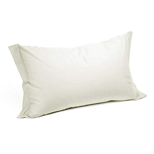 Coppia Federe Guanciali Cuscini Letto Tinta Unita Puro Cotone 52x82 cm-Panna
