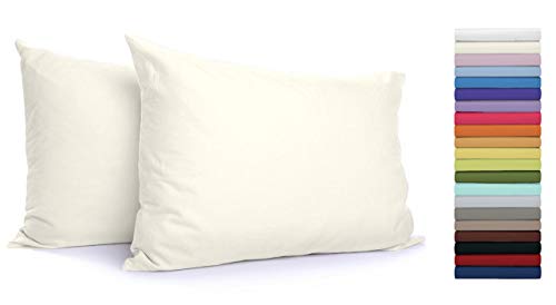 Coppia Federe con Patella di 25 cm per Guanciali 100% Cotone Misura cm 50x80 Colore BEIGE Made in Italy 57 fili al cm2