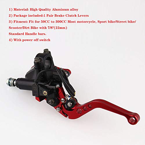 1 Coppia Di Freno Idraulico Della Frizione A Leva Con Trasparente Serbatoio Dell'olio, Regolabile 7/8" Motorcycle Racing Scooter Universale (Rosso)