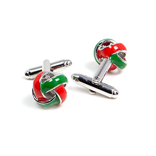 Coppia di gemelli da uomo, in metallo, per ogni occasione, placcato argento, colore: Verde- rosso, cod. 01-05-01-02