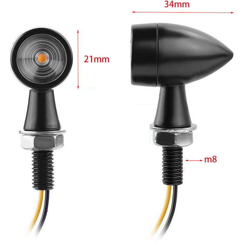 Indicatori di direzione per moto mini - : Colore chiaro: Ambra/Giallo, Colore calotta: Nero anodizzato, Materiale: calotta in ABS di alta qualità e lente PC. 【Accessori】: Usato per indicatori di direzione per moto, luci di posizione, luci di segnalazione, luci di ingombro. Adatto per la maggior parte delle motociclette con un diametro della filettatura di 10 mm. 【Motivi della raccomandazione:】: luci moto multifunzione, illuminazione integrata. Basso consumo energetico e risparmio energetico. 12V per alimentazione CC. Lunga durata, basso consumo, risparmio energetico. Impermeabile, resistente alle intemperie e al 100% antiruggine. Peso del prodotto: 100 grammi Materiale del prodotto: alluminio + lente in PC Tensione: 12v Filettatura del bullone di montaggio: 8 mm Colore chiaro: ambra Collegamento: due fili Adatto per la maggior parte delle motociclette fuoristrada, moto da strada, applicazioni dual-sport come Honda, Suzuki, Yamaha, Kawasaki, Hyosung Aprilia, ecc.