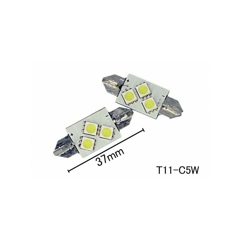 Coppia 2 Lampade Led T11 C5W Siluro 37mm Con 3 Smd 5050 Colore Bianco Freddo 6000K 12V 1W Attacco:T11 C5W Voltaggio: 12V Potenza: 1W Numero Led:3 SMD 5050 Colore:Bianco Freddo 6000K Misura:Lunghezza 37mm,Larghezza 14mm Confezione: 2 Pezzi