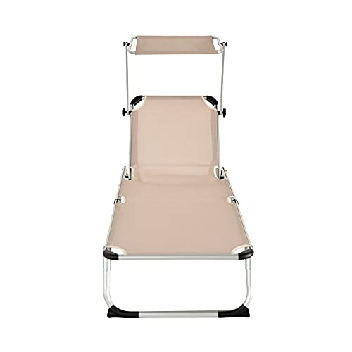 XONE Coppia Lettini Pieghevole, Mare, Piscina, Giardino, con Parasole colore Beige | Struttura in Alluminio e textilene Traspirante | Dimensioni DIMENSIONI: 189x60x28cm
