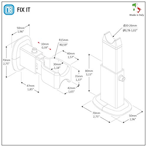 Design e produzione Made in Italy. Distanza minima tra i tubi 14 mm.