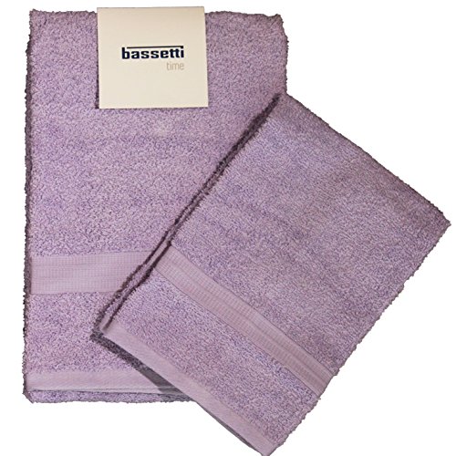 SET COPPIA 2 PEZZI 1+1 OSPITE 40 x 60 + ASCIUGAMANO 60 x 110 BASSETTI TIME ASCIUGAMANI 100% SPUGNA DI PURO COTONE PETTINATO 430 gr/sqm (GLICINE 1811)