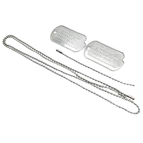 Piastrina di identificazione militare dell'esercito americano. 2 piastrine identificative in acciaio inossidabile di grado 304, con bordo laminato e dentellato, 1 catenina in acciaio inossidabile di grado 304 da 76 cm e 1 catenina da 10 cm.