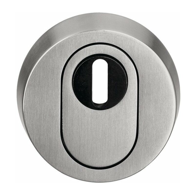 Con copri cilindro rosetta esterna, solido, diametro 55 mm, 14 mm fortemente indurito, con coperchio cilindro integrato con involucro di supporto, in versione conica · Versione fs di rosetta interna, vite nascosta, per montaggio a coppie, consegna con viti M 5, perforazioni per cilindri a profilo (PZ), per superumezioni cilindriche: 10,5 - 15 mm · per lo spessore della porta 58,1-63 mm La rosetta protettiva è conforme alle specifiche del DIN 18273 Ulteriori proprietà tecniche: · Tribuna cilindro: 10,5-15mm · Norma: DIN 18273 · Perforazione: PZ