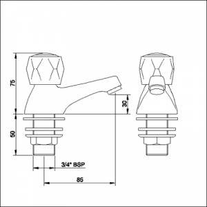 Coppia di rubinetti Acqua Calda e Fredda, per Vasca da Bagno, in Ottone, con Finitura cromata di Alta qualità