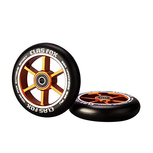 CLAS FOX - Coppia di ruote per monopattino Pro Stunt con cuscinetti ABEC-9, nucleo in metallo CNC (2 pezzi), Arancione
