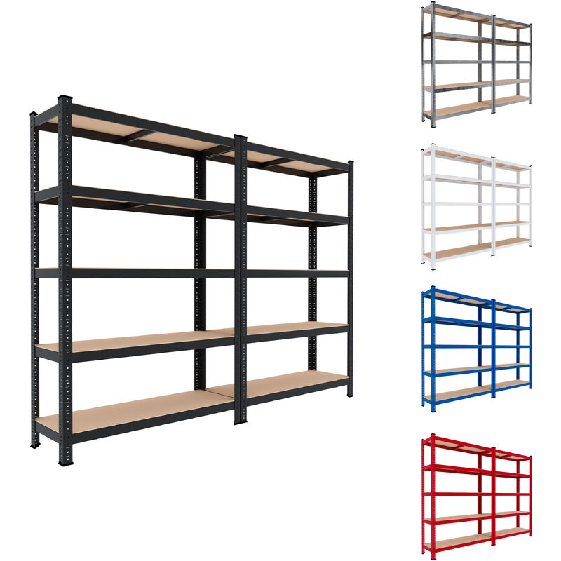 Set di 2 scaffalature Coban con 5 ripiani in metallo e MDF. Ideali per garage, officine, cantine o magazzini. Grazie alla loro alta portata di 875 kg a scaffale, sono in grado di immagazzinare qualsiasi tipo di oggetto. Di facile montaggio grazie alla struttura senza bulloni (Push-fit) che può essere montata senza l'utilizzo di attrezzi. Caratteristiche principali: - Dimensioni totali del singolo scaffale: 180 x 120 x 45 cm (Altezza x larghezza x profondità) - Portata massima a scaffale: 875 kg - Portata massima per ripiano: 175 kg - 5 Ripiani realizzati in MDF - Ripiani regolabili in altezza - Antiruggine - Costruzione senza bulloni - Struttura in ferro - Adatto per immagazzinare qualsiasi tipo di oggetto - Colore: nero Contenuto della confezione: 2X Scaffalautura con 5 ripiani 2X Manuale di montaggio