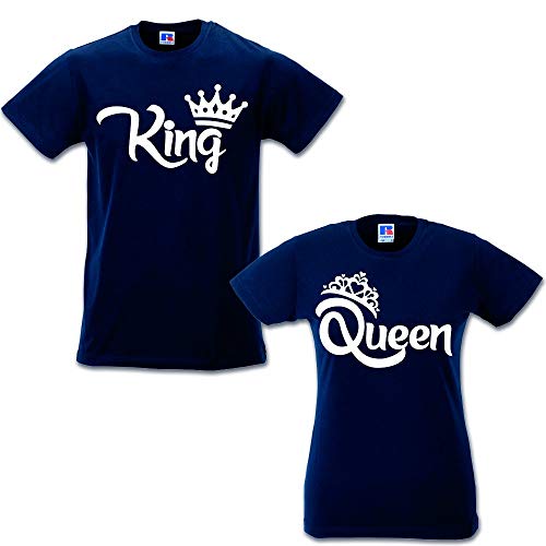 Coppia T Shirt Magliette You And Me King And Queen con Corone Blu Uomo L Donna M