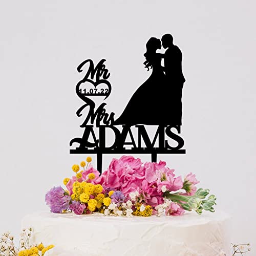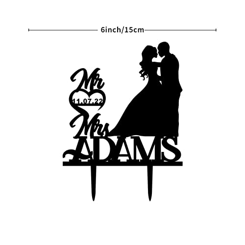 Coppia Silhouette Cuore Rustico Cake Topper Personalizzato Cognome Torta Topper Regalo Sposa Mr And Mrs Wedding Cake Topper Sposa e Sposo Personalizzato Cake Topper Divertente Matrimonio Acrilico Nero