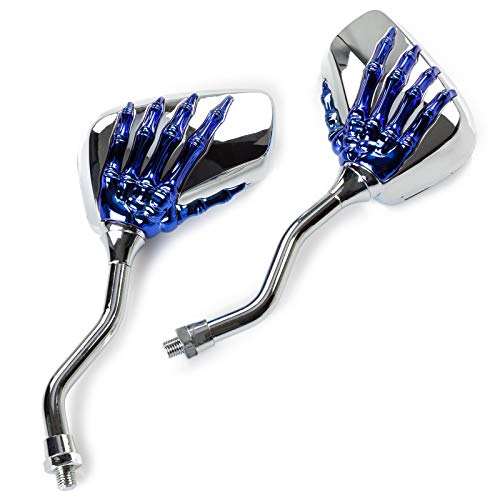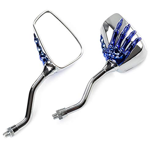Coppia Specchietti Retrovisori Scooter Specchi Moto Custom Blu DX+SX 8+10mm