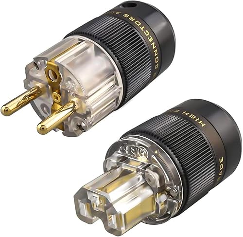 1 coppia di spine HiFi trasparenti High end Schuko Power Connector IEC spina per cavo di alimentazione audio audiofilo (placcato oro trasparente)
