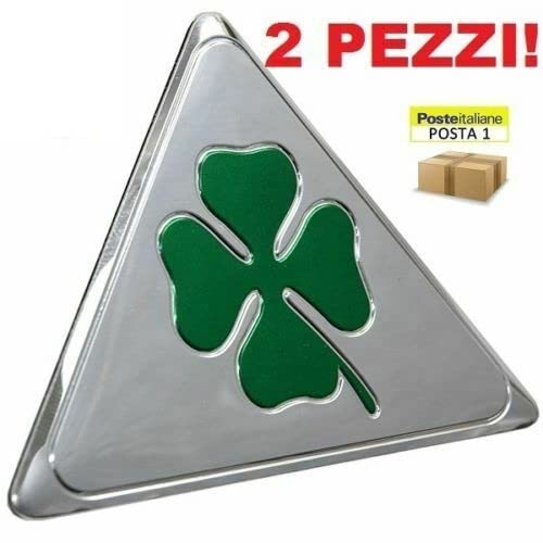 Coppia 2 Stemma Logo Triangolo Cromato con Quadrifoglio Verde QV Grandi Compatibile Per Alfa Romeo Sportiva Giulietta Mito Giulia Stelvio 147 159 Spider 4C Fregio Stemma Laterale