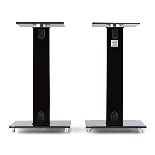 Auna, coppia di supporti per altoparlanti, in alluminio, vetro e MDF, con condotto per cavi e tacchetti, modello BS-03S-BK