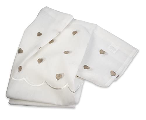 Tata Home Coppia Tende a Vetro Bianche Semitrasparenti Cucina Tendine Bagno Cuoricini Misura 60x150 cm Colore Beige Mod. JANA B2