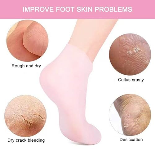 Come usare: pulire prima i piedi, applicare crema del piede e poi indossare i calzini in silicone, attendere qualche minuto e poi vedrai gli effetti meravigliosi. È necessario usare i calzini in silicone a lungo termine per avere effetti migliori.
