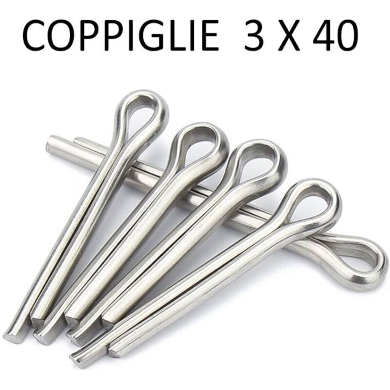 Coppiglie in acciaio grezze tipo commerciale. Diametro mm.3 lunghezza mm.40. Confezione 1 kg.