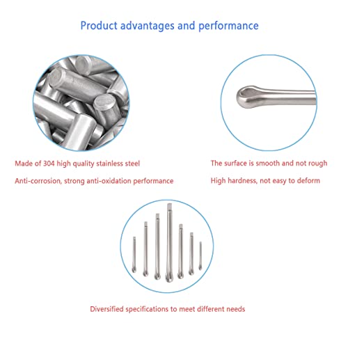 Materiale di alta qualità: le coppiglie sono realizzate in acciaio inossidabile 304 di alta qualità, elevata durezza, non si deforma facilmente, resistenza alla corrosione, resistenza alla ruggine, possono essere utilizzate a lungo in condizioni umide e dure;