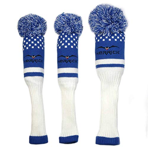 Knit Copri Bastone Driver,3PCS Collo Lungo Big Pom Copricapo in Legno per Golf Club -Protezione Completa Adatto per Gli Uomini Donne-Blu- No.1 3 5 palo di Legno