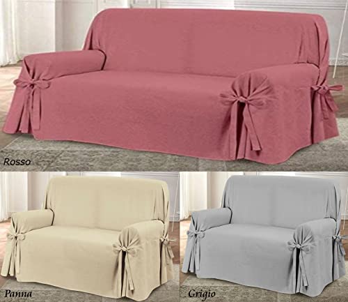 Copri Divano Poltrona Salvadivano Tinta Unita Panama Cotone con laccetti (Grigio, 3 Posti)