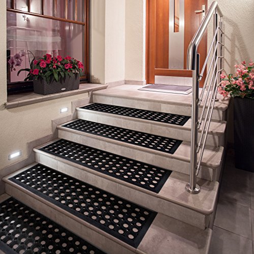 ROBUSTI: Gomma 100% con struttura a griglia, tappeti scale rettangolari (25x75 cm), a quadrati e ad anelli, con bordi smussati e 2 cm di spessore