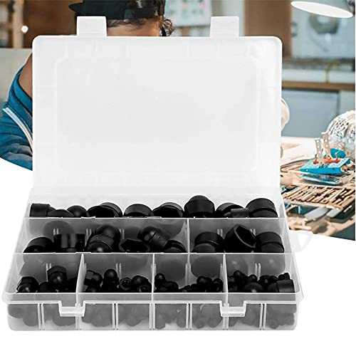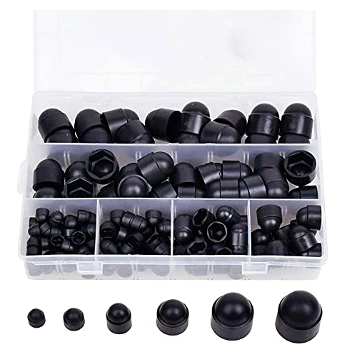 Copri Dado, 145 Pezzi Esagonale Dado Nera Cappuccio, Dado Nera Cappuccio Tappi, Esagonale Gomma Coperchio, M4 M5 M6 M8 M10 M12, con Scatola di Immagazzinaggio per Viti o Bulloni (Nero)