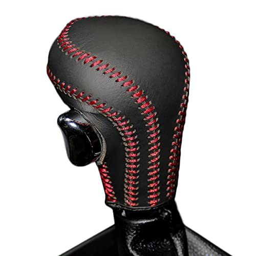 Copri pomello cambio in vera pelle nera, adatto per Audi A4 A5 A8 Q3 Q5 Q7 2009-2010 Copricambio automatico (filo rosso)