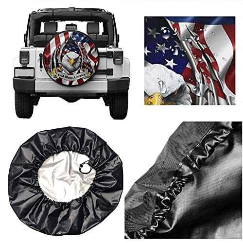 Copri Ruota di Scorta Bandiera Americana Eagle God Bless America Copertura per Pneumatici di Ricambio Copriruota con Logo Protezioni per Pneumatici universali 14-17IN