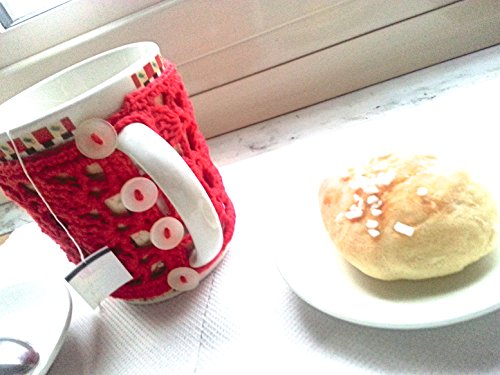 Copri tazza a crochet in cotone rosso con bottoncini (art.56)