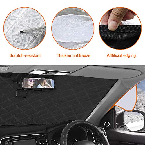 ◕ Copertura completa: la copertura da neve ha 3 dimensioni, vale a dire 245 cm * 120 cm, 230 * 140 cm e 245 * 140 cm, che possono fornire un'adeguata copertura e protezione per il parabrezza e una copertura dello specchietto per mantenere pulito lo specchietto retrovisore, 245 cm * 120 cm è un tipo universale, 230 * 140 cm è adatto per auto e piccoli SUV e 245 * 140 cm è adatto per monovolume e SUV di grandi dimensioni.
