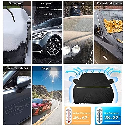 Design unico: il design delle strisce riflettente circostanti migliora la sicurezza del parcheggio di notte. Il fondo dell'auto ha un design antivento. Il design della cerniera laterale rende più comodo da usare. Il materiale della copertura della macchina è liscia e delicata e non grafferà la vernice! Borsa di stoccaggio, stoccaggio conveniente, bella bocca dello specchio, ecc.