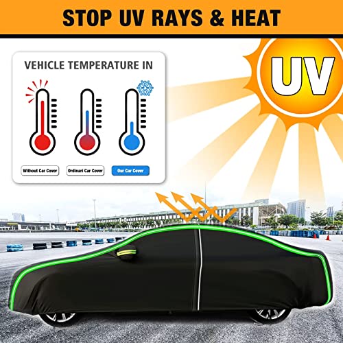 【Protezione per tutte le intemperie】Il copri auto per esterno protegge la tua vettura tutto l'anno da tutte le condizioni atmosferiche e dagli elementi durante tutto l'anno. Proteggi la tua auto dalla neve e dal gelo in inverno. Può rifrangere i raggi ultravioletti in estate, sole, pioggia, protezione dal vento e fermato escrementi di uccelli, polvere, foglie in primavera e in autunno, proteggere la vernice dell'auto.
