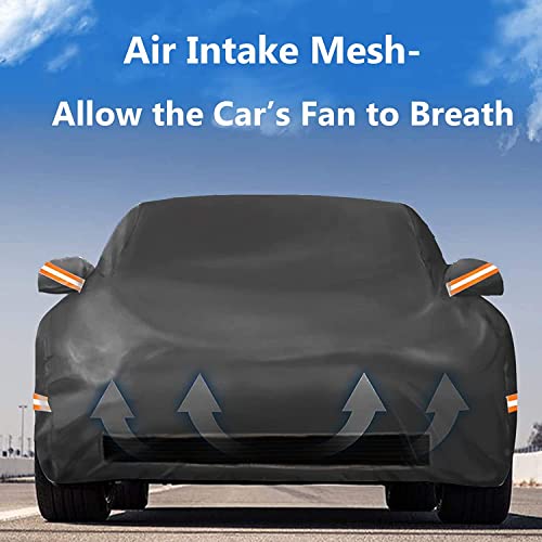 DESIGN ANTIVENTO E STRISCE RIFLETTENTI - La copertura esterna dell'auto ha l'orlo elasticizzato per un facile allacciamento e 4 pezzi di elastico con corde possono essere fissati sull'auto contro i forti venti. Mantieni la copertura dell'auto perfettamente in posizione per proteggere il veicolo. Con 6 barre di avvertimento riflettenti progettate con arancione fluorescente emette luce intensa di notte per evitare impatti imprevisti in un ambiente buio.