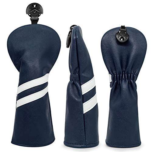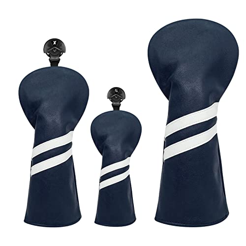 Copricapo in legno da golf 3 pezzi Copricapo per mazza da golf in pelle PU con etichetta intercambiabile Accessori per protezione impermeabile a collo, Blu scuro