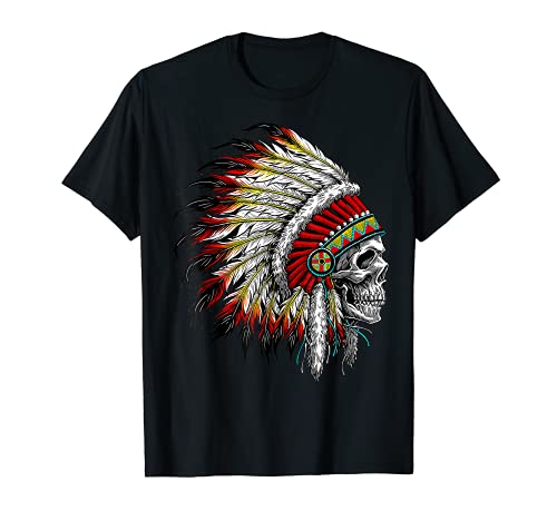 Teschio indiano indiano indiano, tribale, copricapo, piume. Regalo nativo americano, regali nativi americani per gli amanti dei nativi americani, regali nativi americani per Regalo di compleanno per innamorati nativi T-shirt nativa americana da donna.