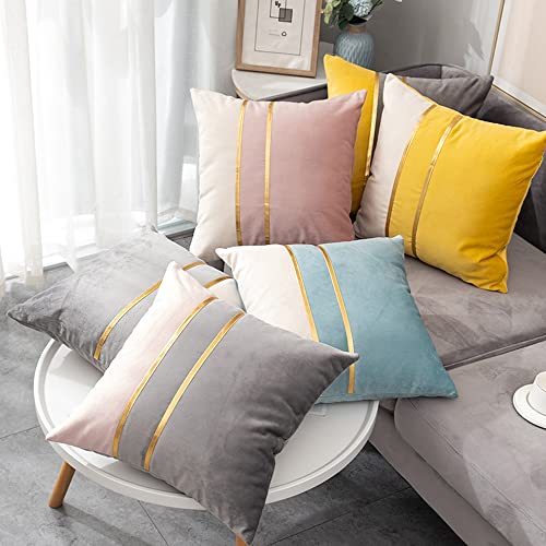 Design alla moda: velluto bicolore con design a strisce dorate più cerniera nascosta, la cerniera e la federa hanno lo stesso colore, l'aspetto generale non sarà invadente, più alla moda.