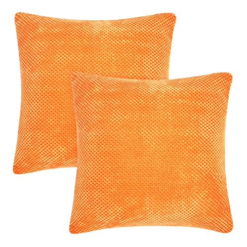 UMI Set di 2 Copricuscini in Velluto Federe Cuscini 55x55cm con Cerniera Invisibile Arancione
