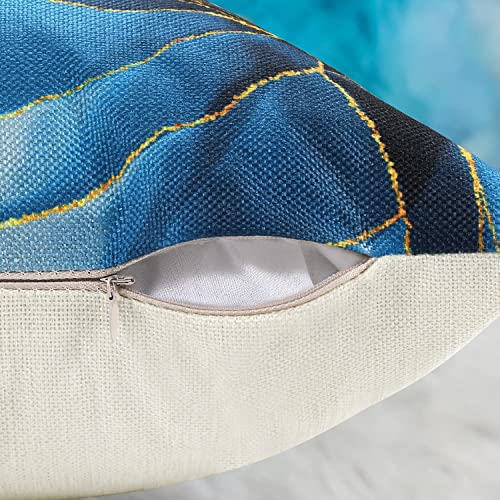 Copricuscino Navy Blu Federe Cuscini 40x40 Cuscini Decorativi Blu e Oro Arte Astratta Fiori Modello Moderno Cuscino Lino Set di 4 Federe Quadrate Decorativo per Divano Casa Camera da Letto Decor