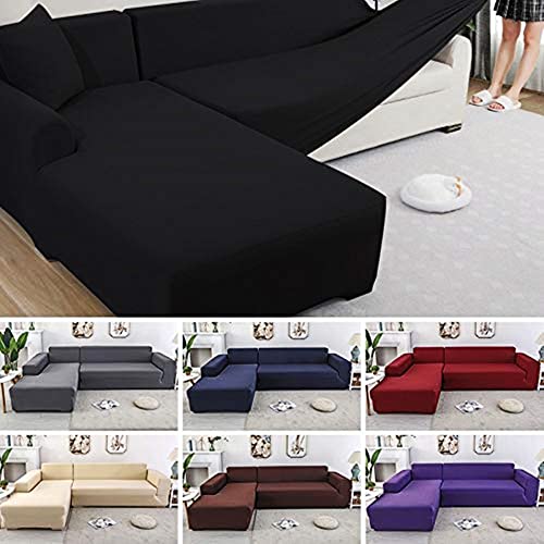 OKJK Copridivani ad Angolo, Rivestimento per mobili Soggiorno Moderno, copridivano sfoderabile Chaise Longue Elastico Universale a Forma di L (Black,Part B-B 90-140cm)